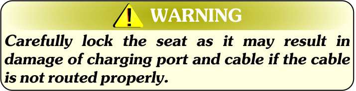 Carefully lock the seat as it may result in damage of charging port and cable if the cable is not routed properly.